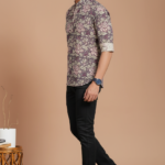 Effortless Ethnic Style Elevate your everyday wardrobe with this Men’s Mauve Floral Short Kurta. Crafted from breathable premium cotton, it features a sophisticated botanical print, a classic Mandarin collar, and versatile roll-up sleeves. Perfect for casual outings, festive brunches, or a smart-casual office look when paired with chinos or denim.