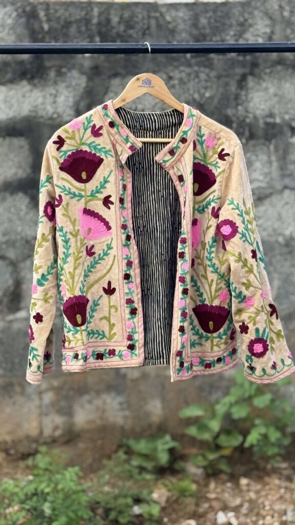 Elegant embroidered ethnic jacket with vibrant floral detailing — perfect for adding a touch of tradition to your style